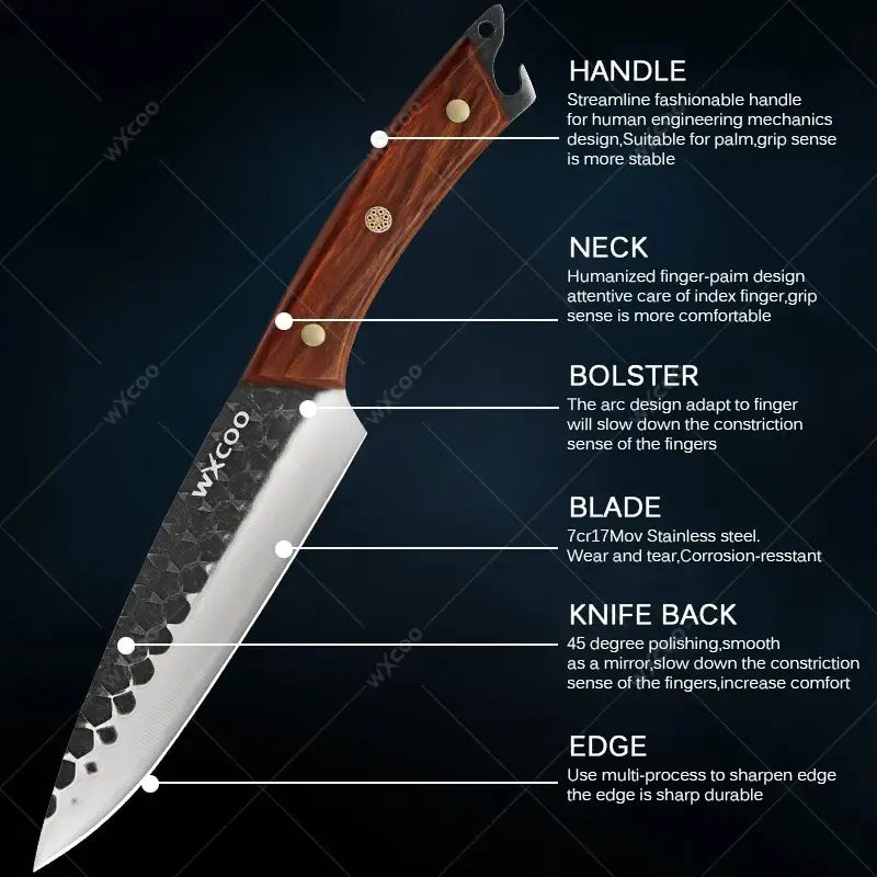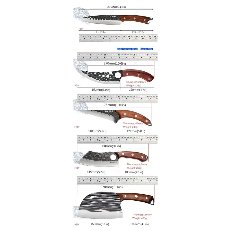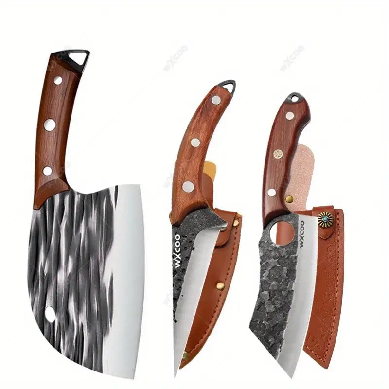 This versatile kitchen chef knife set includes 1 to 5 professional-grade stainless steel knives, designed for boning, chopping vegetables, preparing barbecue, and general kitchen tasks. Durable and sharp, each knife offers precision cutting for home cooking or outdoor activities like camping. Ergonomically designed for comfort and safety, this multipurpose knife set is a must-have for chefs, food enthusiasts, and outdoor adventurers.