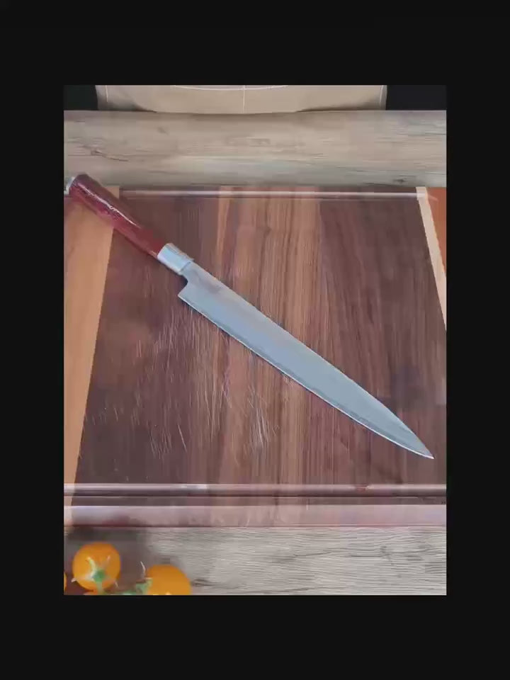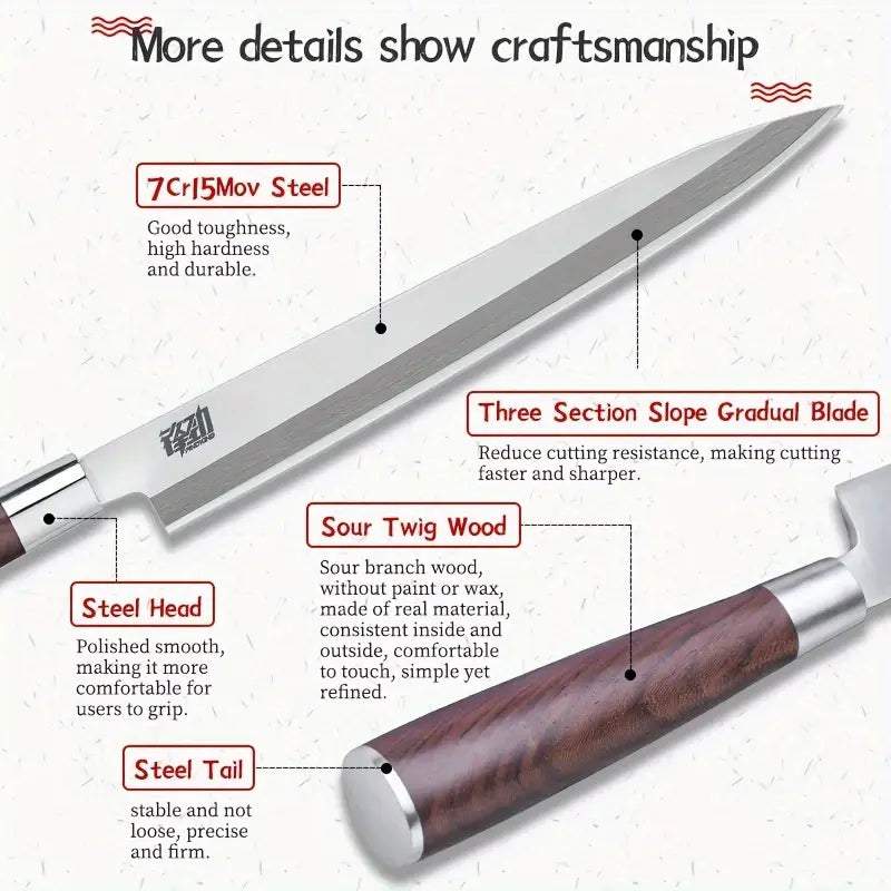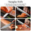 This 10-inch Japanese Yanagiba Knife is crafted from high-quality stainless steel, designed for precision slicing of sashimi, fish, and meat. Featuring a traditional wooden handle for comfort and control, it delivers sharp, smooth cuts and is suitable for both professional kitchens and outdoor cooking, making it a versatile tool for any chef.