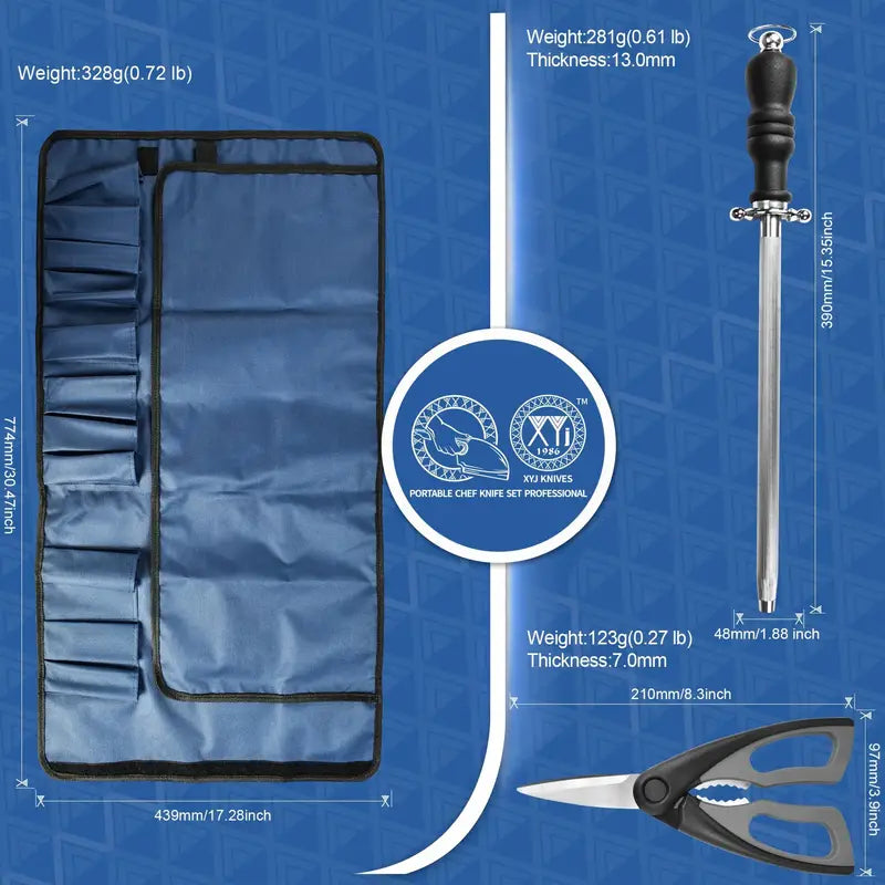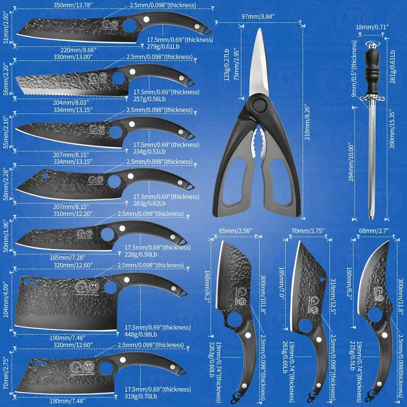 This 10-piece professional forged knife set includes essential kitchen tools like a large butcher knife, scissors, honing steel, and a whetstone, all neatly stored in a convenient roll bag. Ideal for both home and professional kitchens, this set makes a thoughtful and personalized gift for birthdays, Christmas, Mother's Day, Father's Day, or any special occasion. Perfect for men, women, and anyone who loves cooking or grilling.