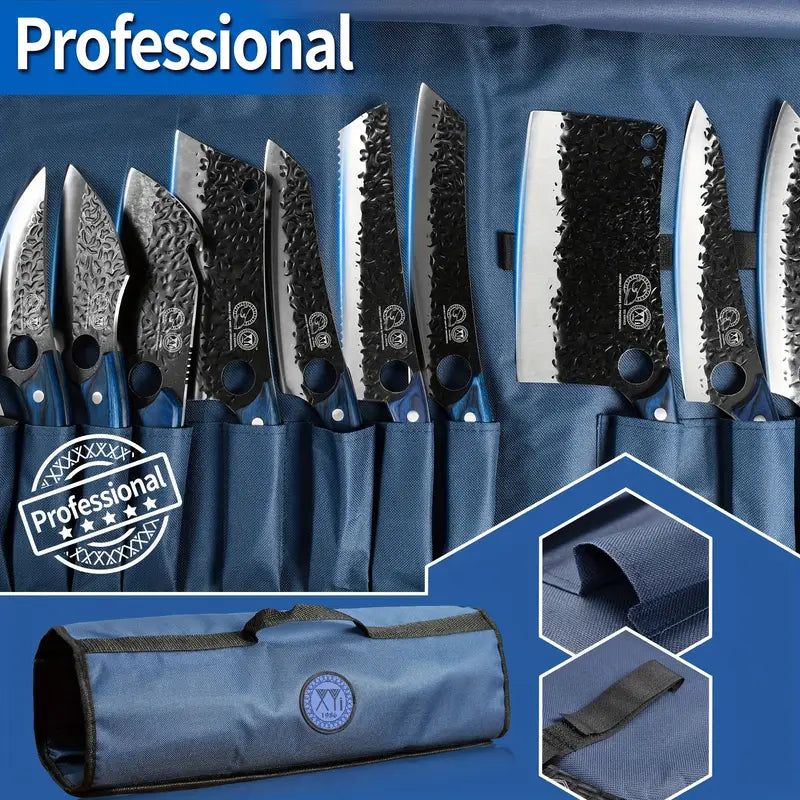 10-Piece Professional Forged Knife Set with Roll Bag – Includes Butcher Knife, Scissors, Honing Steel & Whetstone, Perfect Gift for Special Occasions