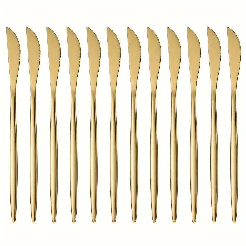 12/24pcs Gold Stainless Steel Table Knife Set – Mirror Polished Steak Knives, Classic Design, Dishwasher Safe, Ideal for Home & Restaurant Use