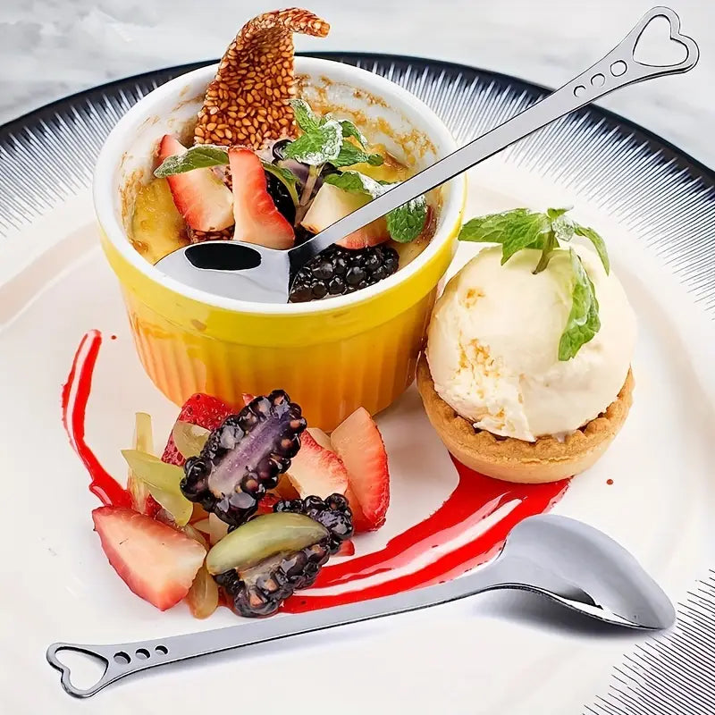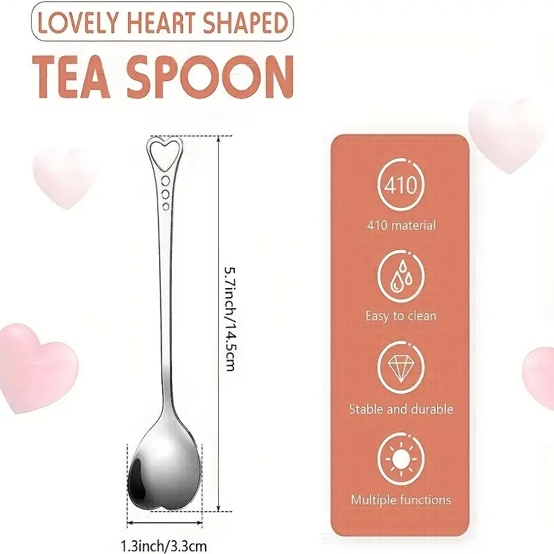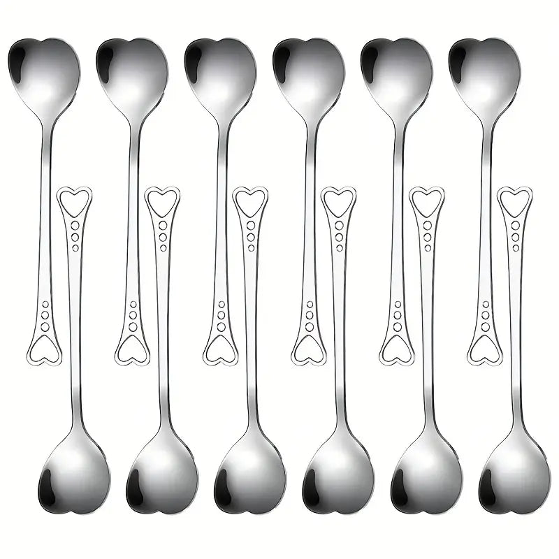 Add a touch of elegance to your table with this 12-piece heart-shaped stainless steel spoon set. Perfectly sized at 5.7 inches, these versatile spoons are ideal for coffee, tea, sugar, desserts, ice cream, and more. Crafted from durable, rust-resistant stainless steel, they are suitable for both home and restaurant use.