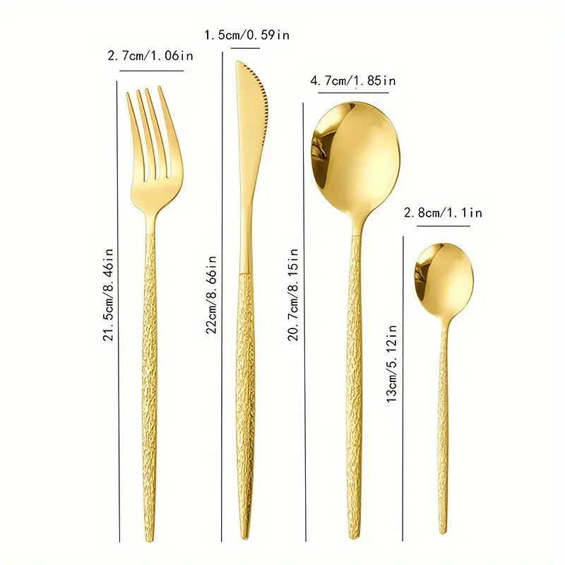 Crafted from durable stainless steel with a stylish hammered gold finish, each piece combines luxury and practicality, ensuring longevity and effortless cleaning. Ideal for: