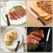 Upgrade your dining experience with this 12-piece premium knife set featuring sharp serrated blades for steak, tomatoes, bread, and desserts. Crafted from durable stainless steel with a sleek metallic finish, these knives provide excellent cutting performance and long-lasting sharpness. Designed with a non-slip grip, fade-resistant coating, and dishwasher-safe convenience, they are perfect for everyday family meals, restaurants, dessert shops, and professional kitchen use.