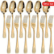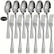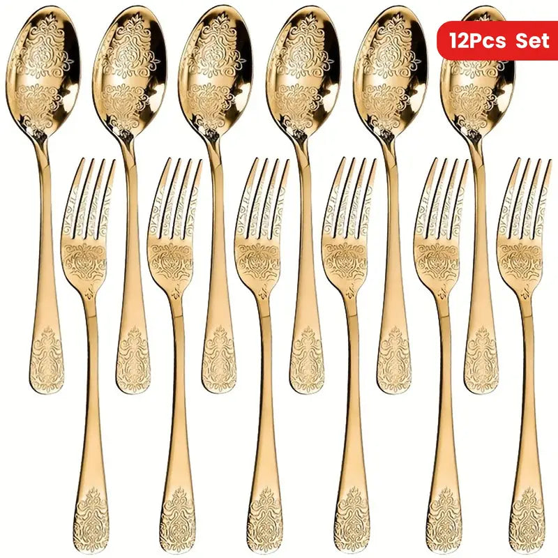 12pcs Stainless Steel Cutlery Set - 6 Forks & 6 Spoons, Embossed Design, Dishwasher Safe for Home & Restaurant Use