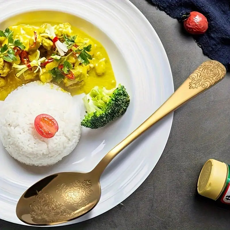 Elevate your dining experience with this 12-piece stainless steel cutlery set, perfect for both everyday meals and special occasions. This set includes 6 forks and 6 spoons, each featuring an elegant embossed design that adds a touch of sophistication to your table setting. Crafted from high-quality stainless steel, these utensils are durable, rust-resistant, and dishwasher safe for easy cleanup. Ideal for home use, restaurants, hotels, and more, this versatile cutlery set will seamlessly complement any dining decor.