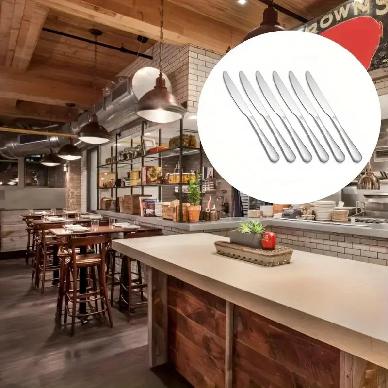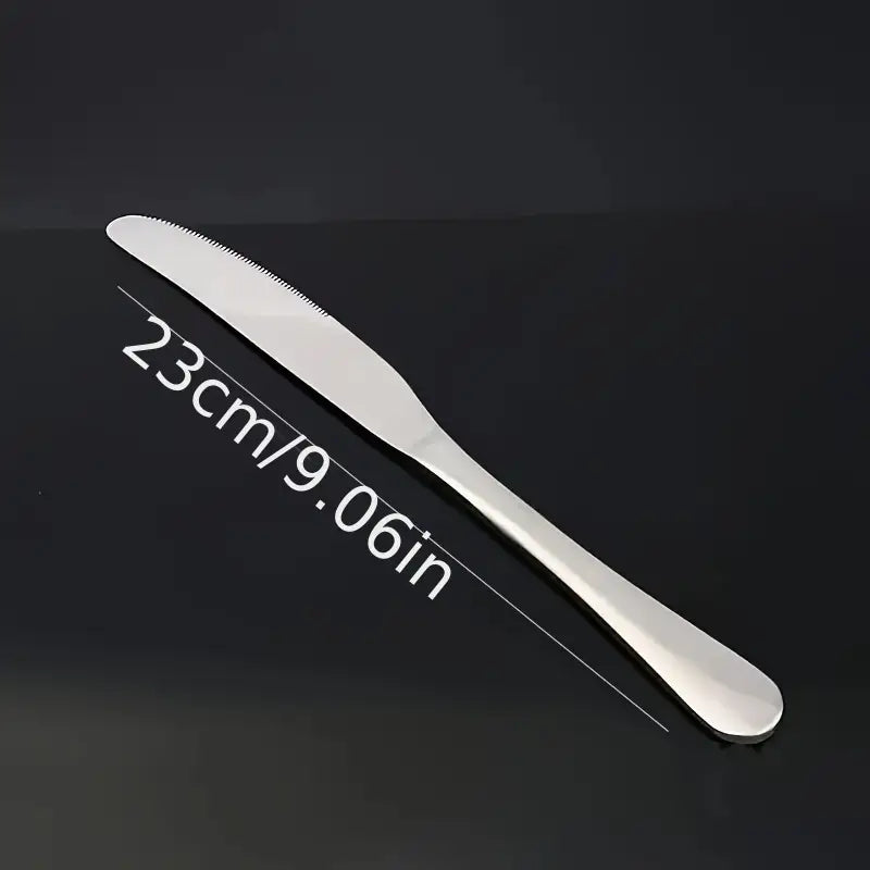 Enhance your dining experience with this 12-piece stainless steel dinner knife set. Made from premium food-grade stainless steel, each knife features a mirror-polished finish for a sleek, elegant look. Durable and dishwasher safe, these knives are ideal for everyday use at home, professional restaurant settings, or special gatherings and parties. A perfect blend of style, quality, and convenience for your dining table.