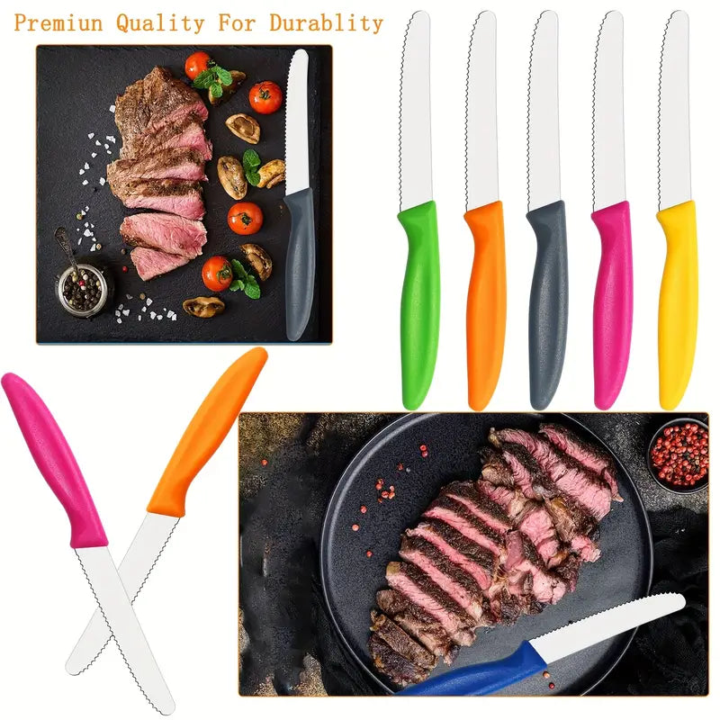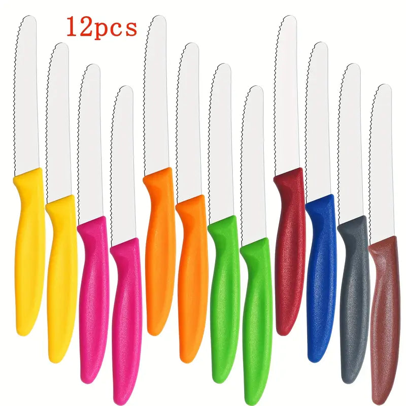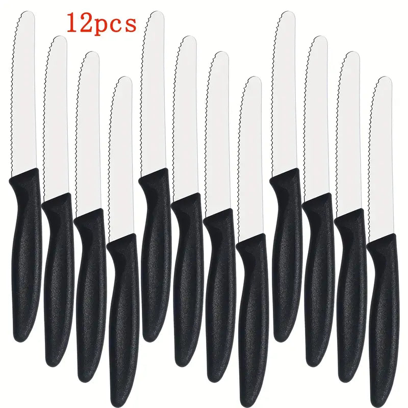 12pcs Stainless Steel Knife Set – Tomato, Steak, Snack, Bread & Cheese Knives | Durable Cutlery for Dining, Outdoor Meals & Holiday Gatherings, Dishwasher Safe