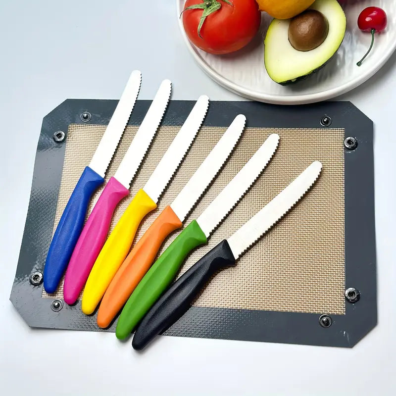 This 12-piece high-quality stainless steel knife set includes tomato, steak, snack, bread, and cheese knives, perfect for everyday dining, outdoor meals, and holiday gatherings. Designed for precision cutting of vegetables, fruits, bread, and cheese, these durable knives feature sharp serrated edges and a comfortable grip. Dishwasher safe and versatile, this cutlery set is ideal for home use, picnics, and festive occasions, combining practicality with style.