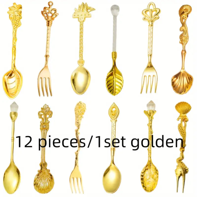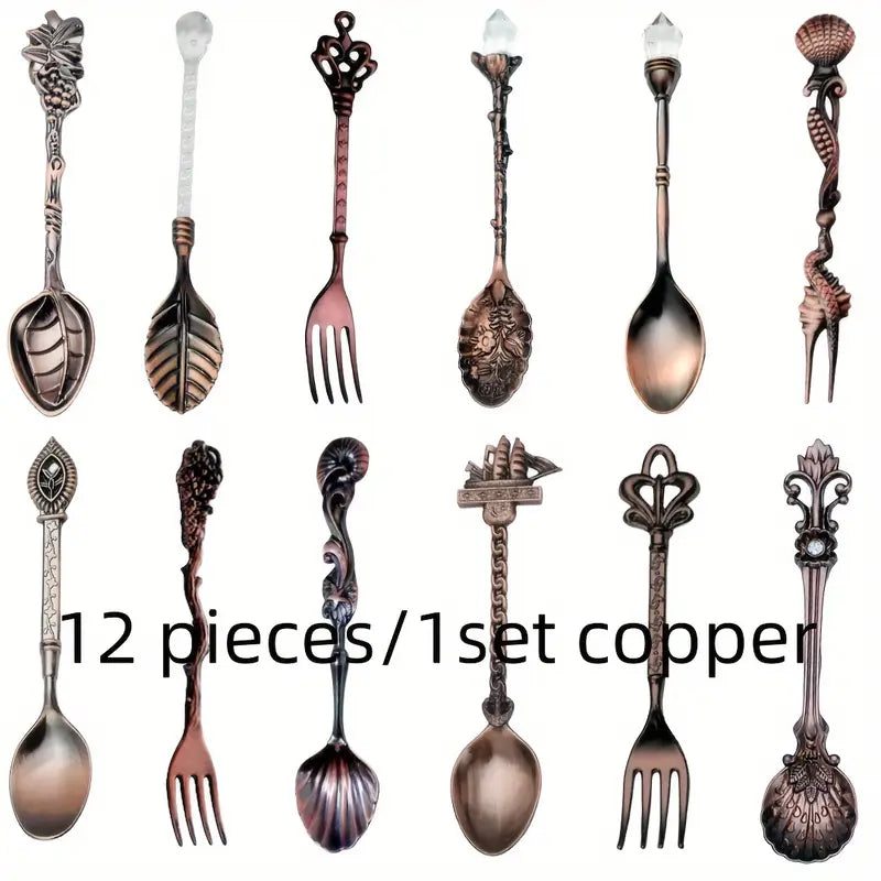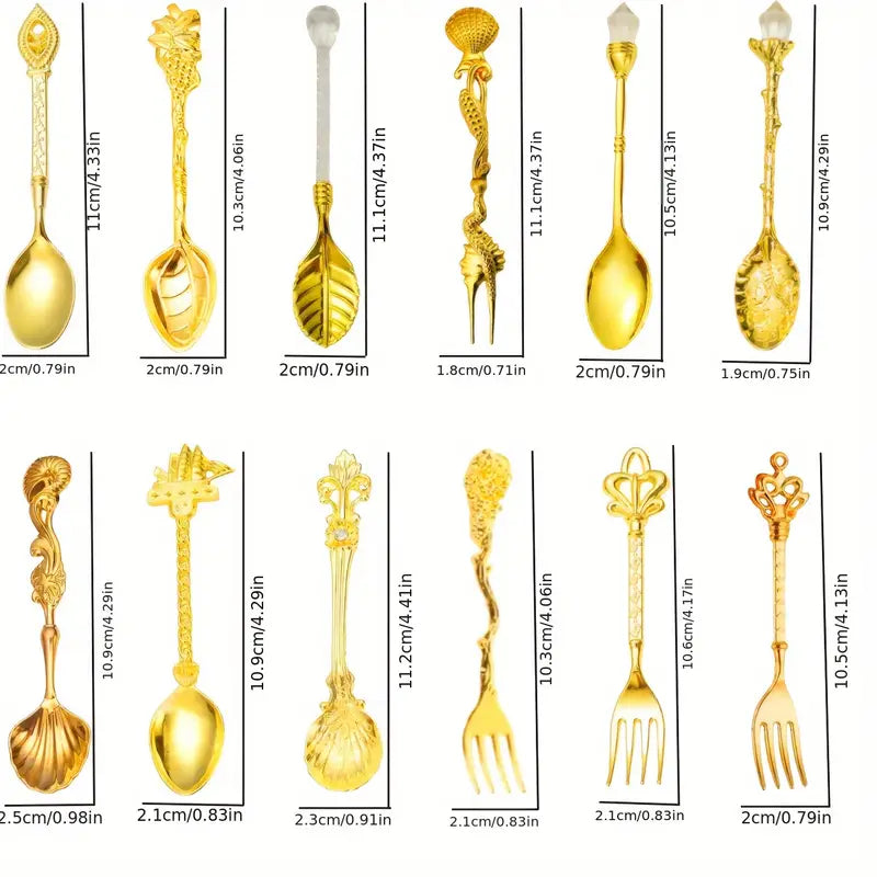 Bring timeless elegance to your table with this 12-piece vintage coffee and dessert spoon set. Crafted with a boutique-inspired aristocratic design, these spoons add a touch of luxury to everyday dining. Perfect for serving coffee, tea, desserts, cakes, fruits, or even seasoning, they are a versatile addition to your kitchen or hotel tableware.