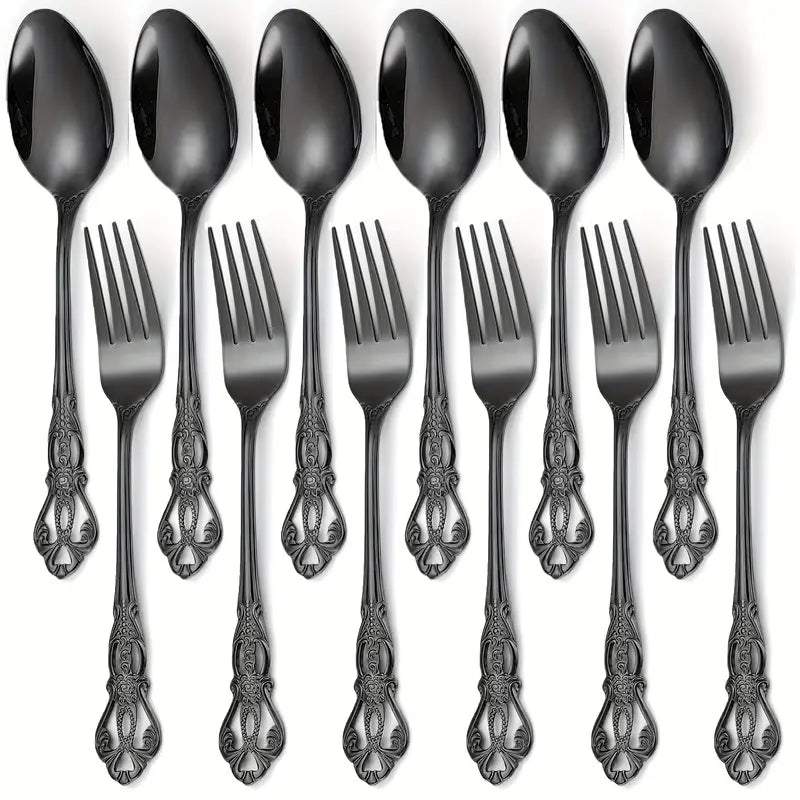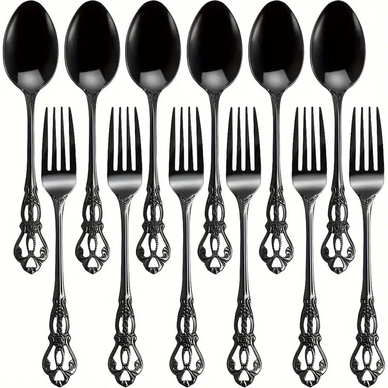 Complete 12-Piece Set: Each set includes a variety of spoons and forks for all your dining needs.