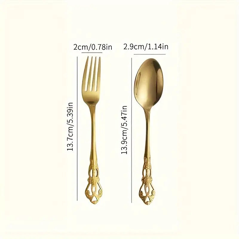 12pcs Vintage Stainless Steel Dessert & Coffee Spoon & Fork Set – Elegant Tableware for Home, Kitchen & Party