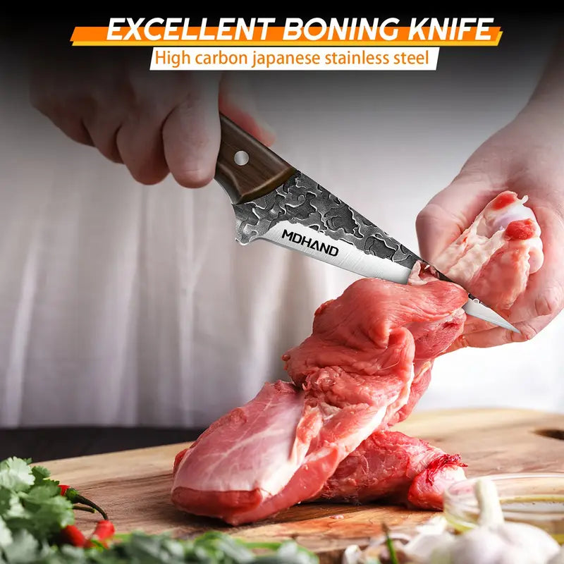 14-Piece Hand Forged Chef Knife Set – High Carbon Steel Butcher, Boning, Carving & Cleaver Knives with Roll Bag