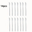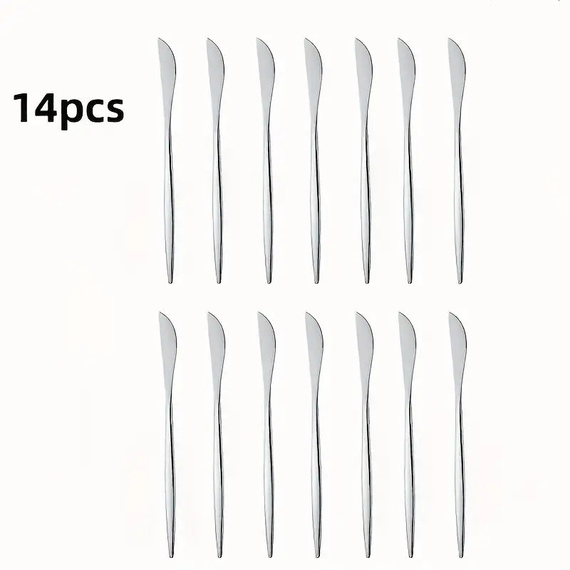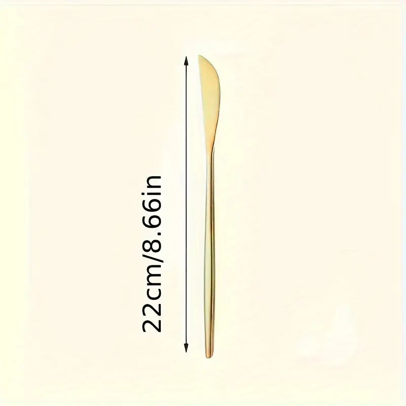 Enhance your dining table with this 14-piece steak knife set, featuring a mix of golden and silvery stainless steel knives. Designed for precision cutting and durability, these knives are perfect for home use or professional restaurant settings. Dishwasher safe and elegantly finished, this set combines style with functionality, making it ideal for family meals, parties, or special occasions.