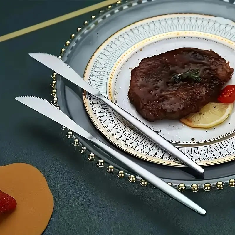 14pcs Golden & Silvery Stainless Steel Steak Knife Set – Dishwasher Safe, Elegant Tableware for Home & Restaurant