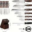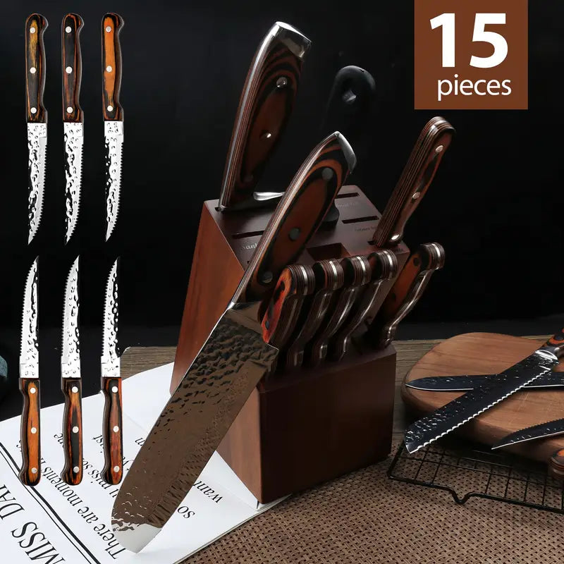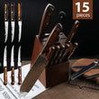 15/20-Piece Professional Kitchen Knife Set with Block & Sharpener – Ultra-Sharp Medium Carbon Stainless Steel, Triple Rivet Wooden Handles, Dishwasher Safe