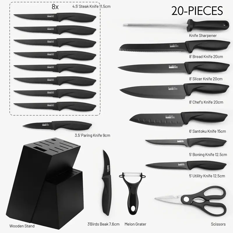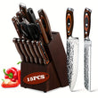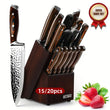 15-Piece Professional Kitchen Knife Set with Wooden Holder & Sharpener - High-Carbon Stainless Steel