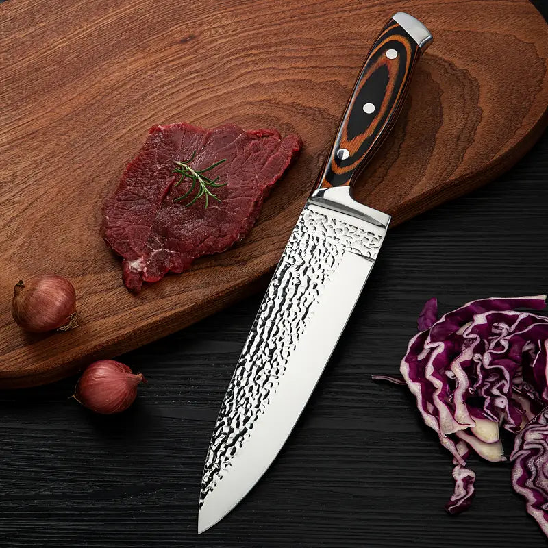 Upgrade your kitchen with this 15-piece professional kitchen knife set, featuring super-sharp high-carbon stainless steel blades for precision cutting. The set includes essential knives for all your cooking needs, along with a stylish wooden block for safe storage and a built-in sharpener to keep your knives in top condition. Ideal for both beginner and expert chefs, this hammered knife block adds a touch of elegance to your kitchen decor. Perfect for everyday use or as a thoughtful fall home decor addition.