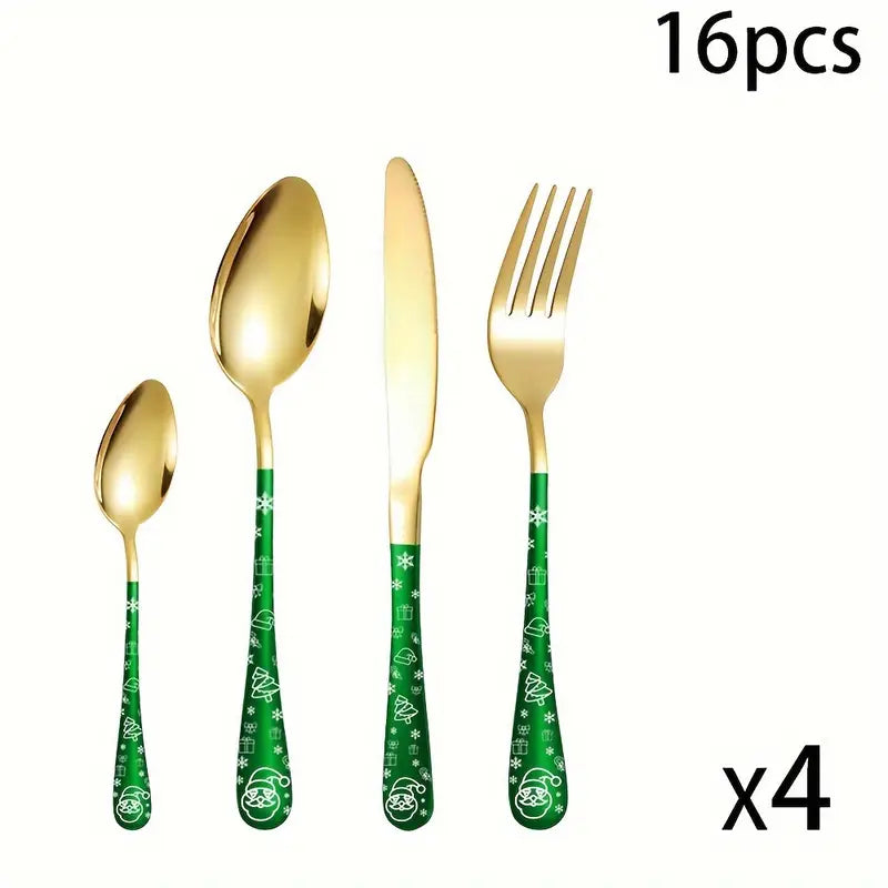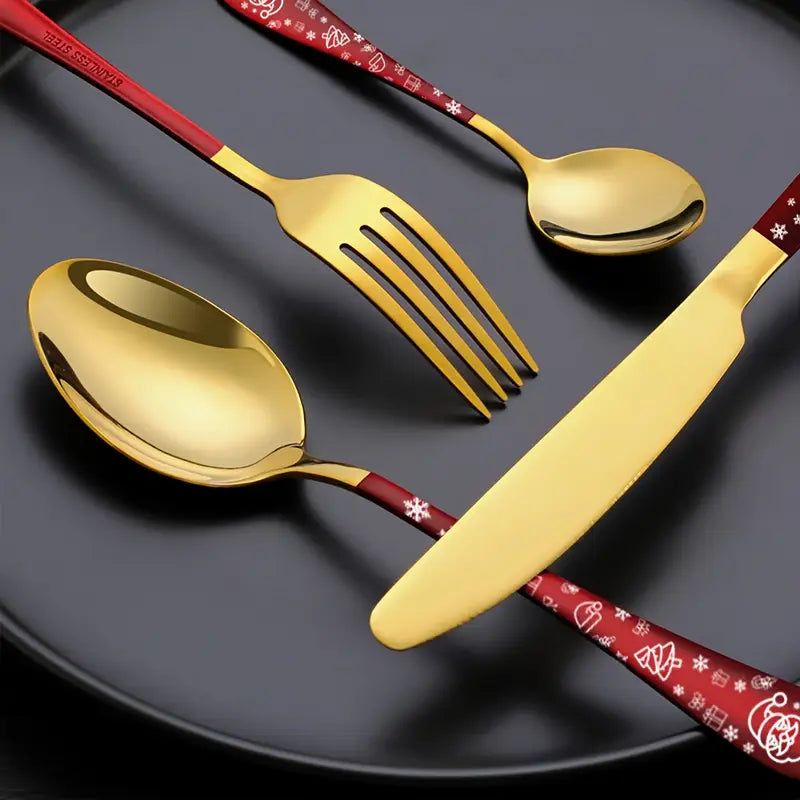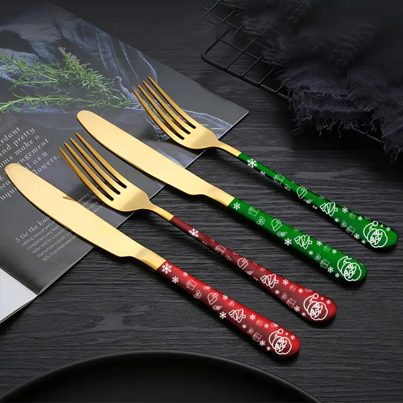 Whether you're hosting a holiday feast or giving a thoughtful gift, this festive set is sure to impress. It is ideal for holiday enthusiasts, offering a delightful combination of function and seasonal charm. Packaged as a festive gift set, this flatware will elevate your table setting, making every meal feel like a celebration. Perfect for creating lasting memories with family and friends during the most wonderful time of the year.
