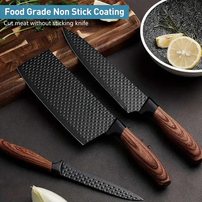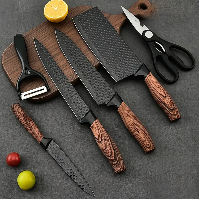 1pc/6pcs Kitchen Knife Set – Chef, Slicing, Scraper Knives & Scissors | Sharp Stainless Steel Blades with Ergonomic Wooden Handles, Gift Box Included
