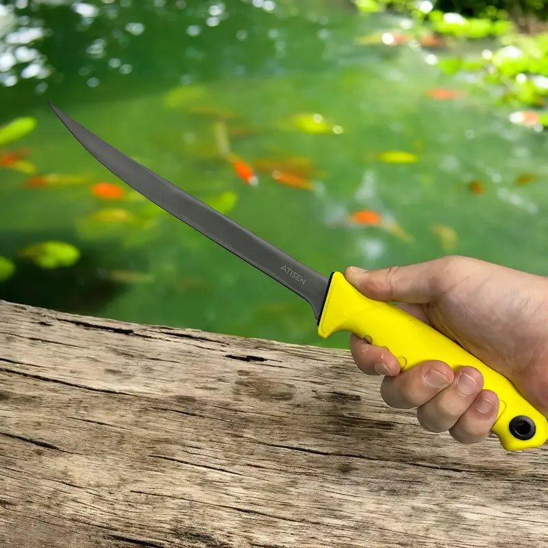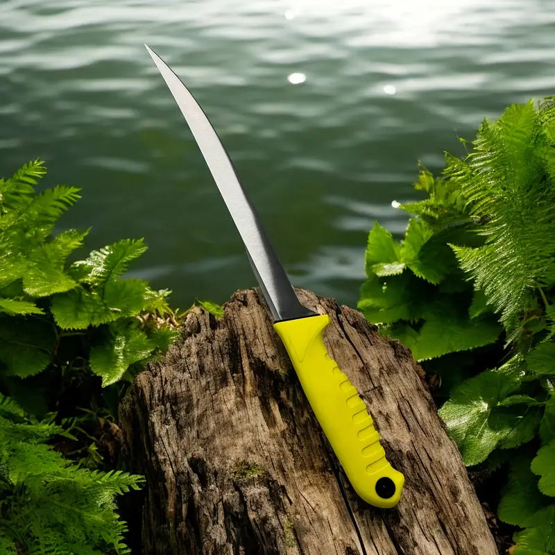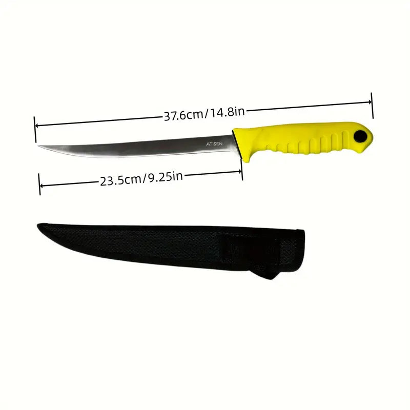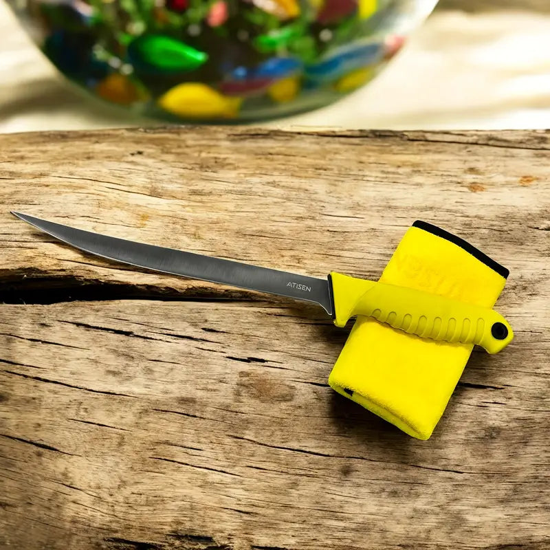 2-Piece 9-Inch Yellow Knife Set with Sharpener & Towel - Perfect for Fish & Boning Knives