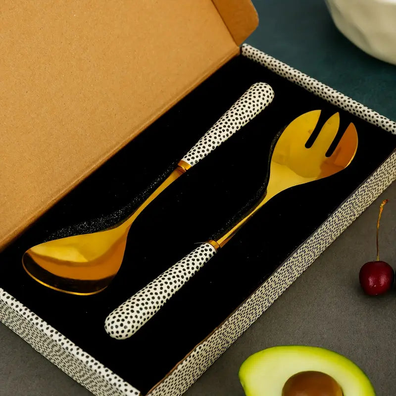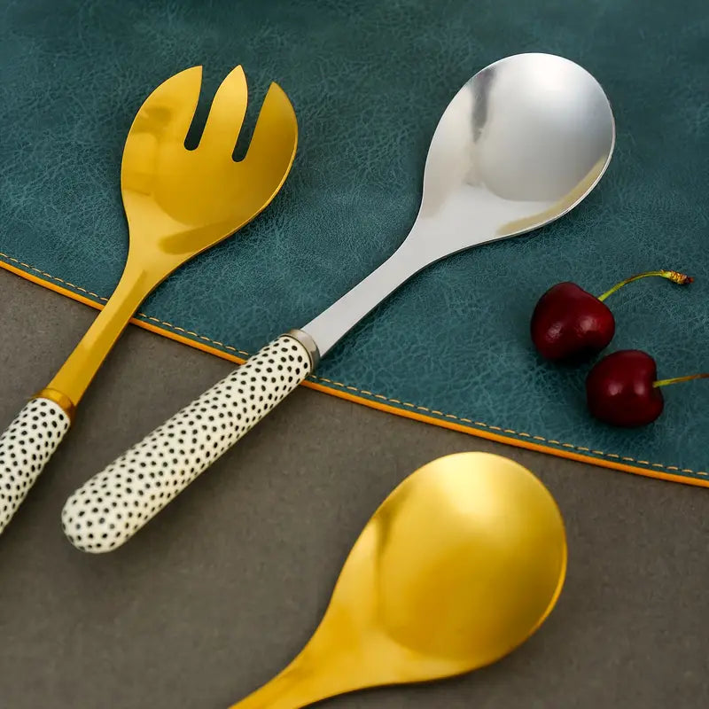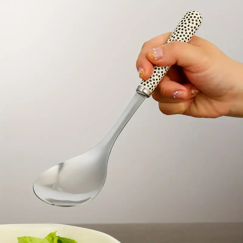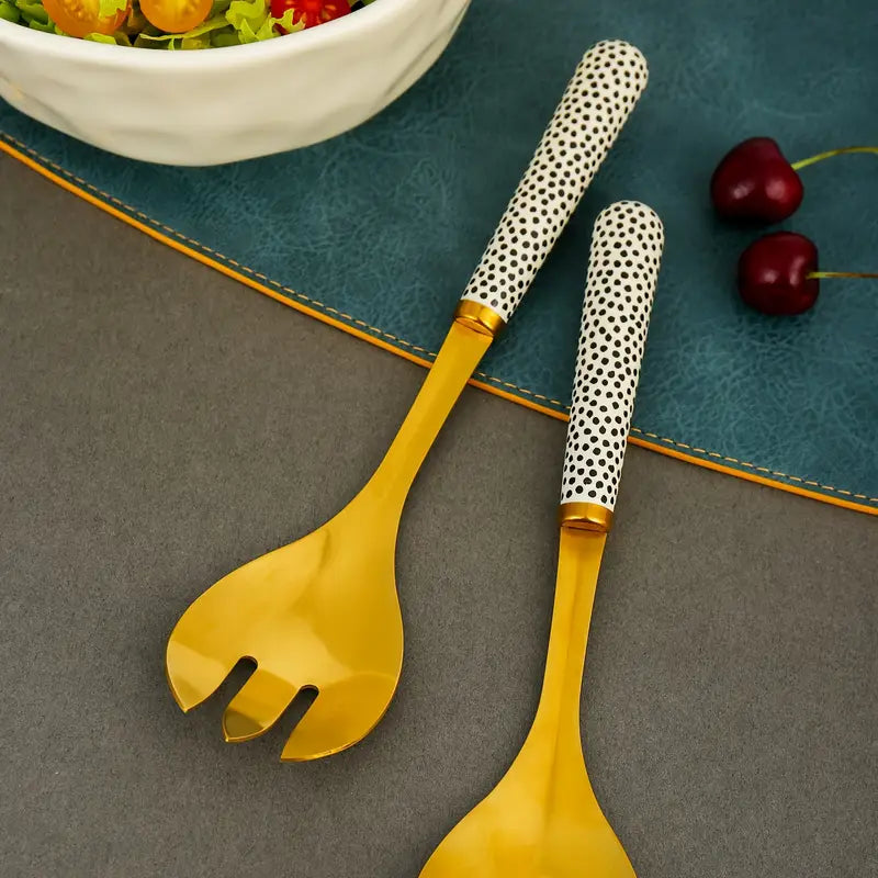 Upgrade your dining experience with this elegant 2-piece salad serving set. Crafted with durable stainless steel and stylish ceramic handles, this spoon and fork duo is perfect for pasta, Western-style salads, and a variety of buffet dishes.