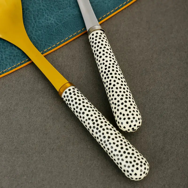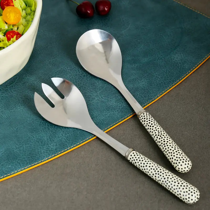 2-Piece Ceramic Handle Stainless Steel Salad Spoon & Fork Set – Pasta, Western Salads & Buffet Serving