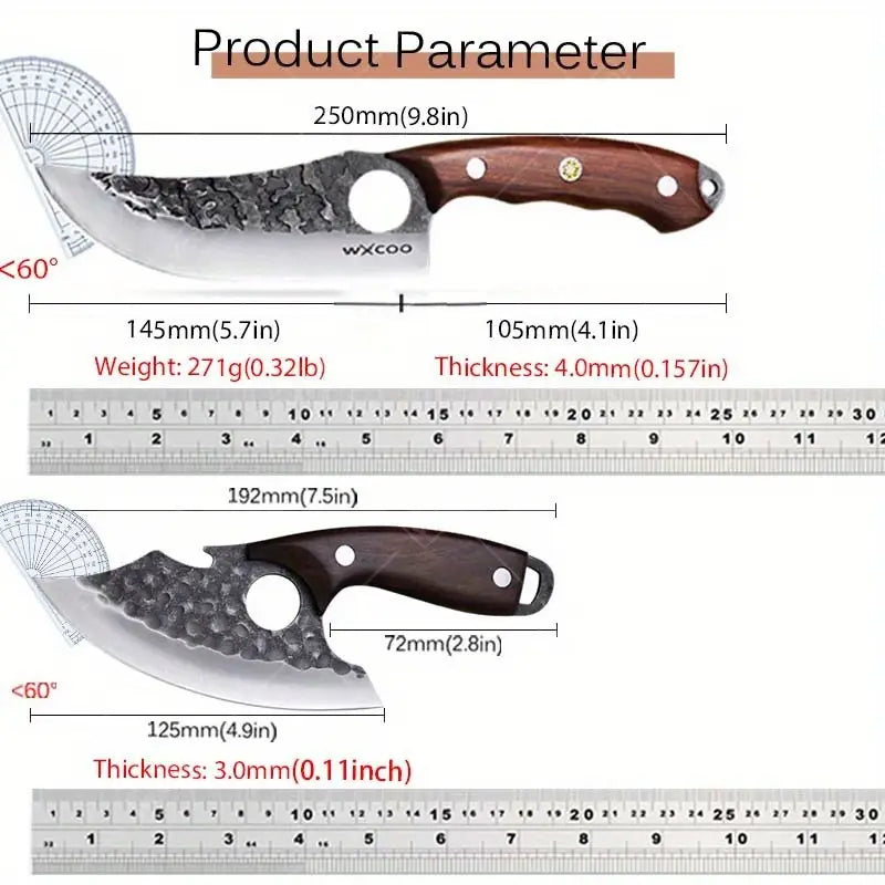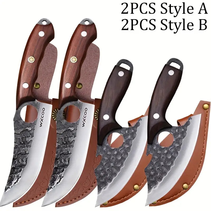 Upgrade your kitchen with this versatile 2-piece knife set, featuring high-quality stainless steel blades and comfortable wood handles. Perfect for chopping vegetables, slicing meat, filleting fish, or cutting cheese and pizza, these knives are ideal for both home cooking and outdoor activities like camping. Each knife comes with a protective sheath for safe storage, making them a convenient and professional addition to any kitchen.