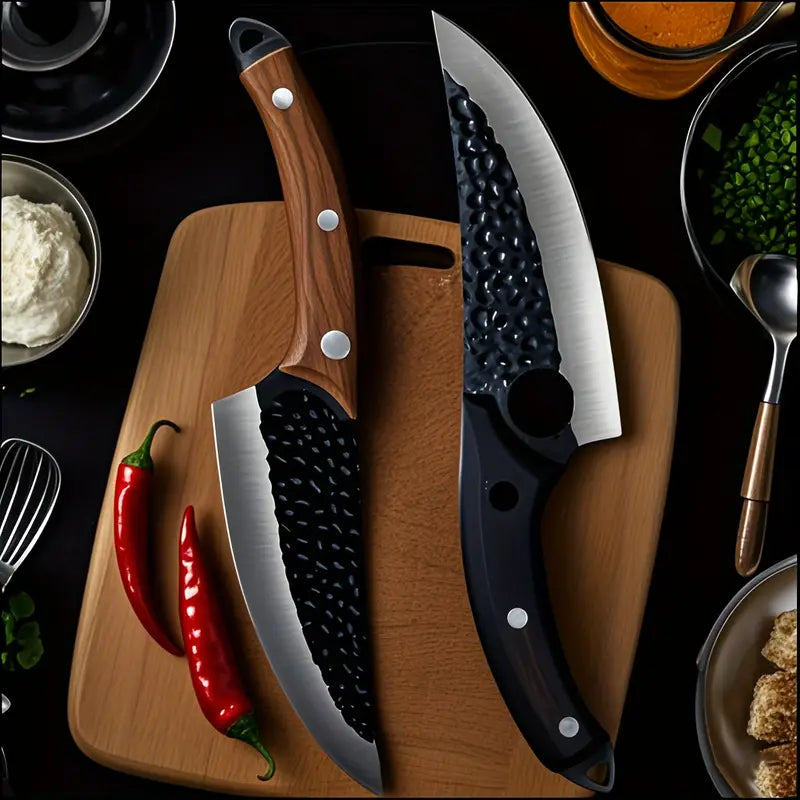 2-Piece Stainless Steel Boning & Meat Cleaver Knife Set – Kitchen Essentials