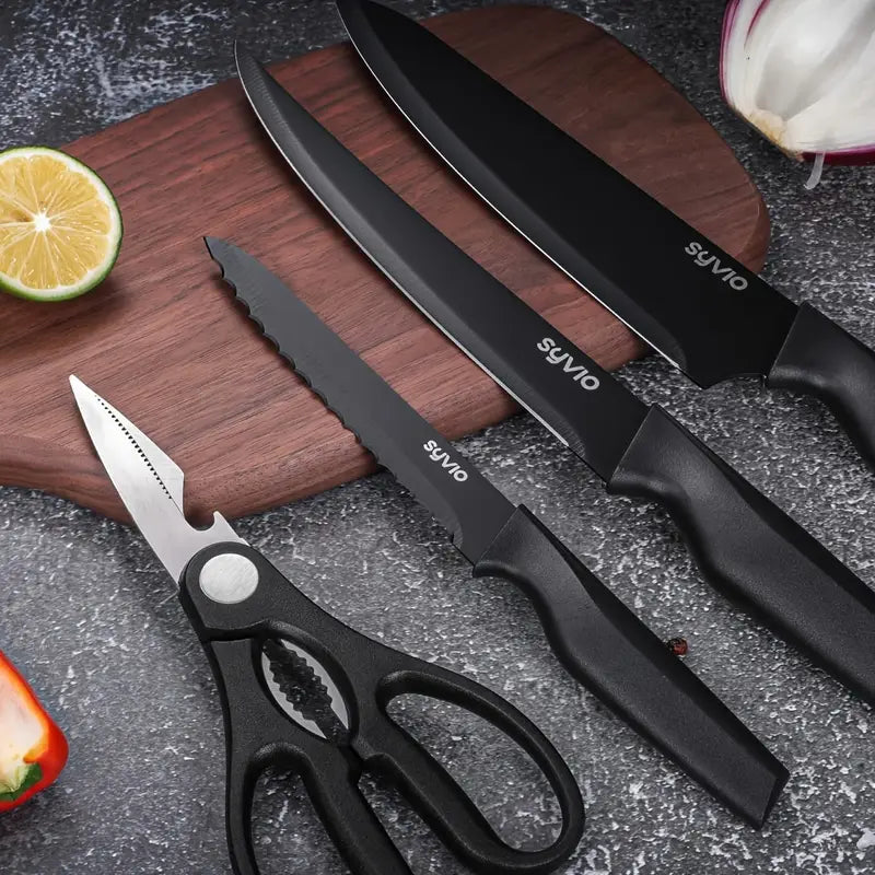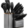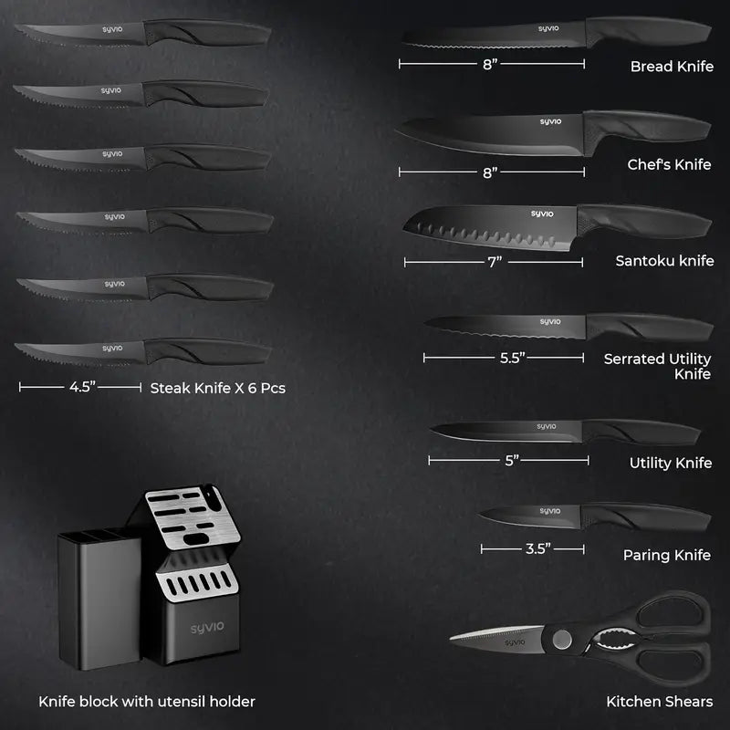 This 21-piece kitchen knife set features razor-sharp, high-carbon stainless steel blades for precision and durability. The set includes a self-sharpening block, heavy-duty poultry shears, six serrated steak knives, and a variety of multipurpose knives for meat, vegetables, and more. Designed with ergonomic, anti-slip handles for comfort and control, this lightweight, dishwasher-safe set ensures effortless meal prep and long-lasting performance in your kitchen.