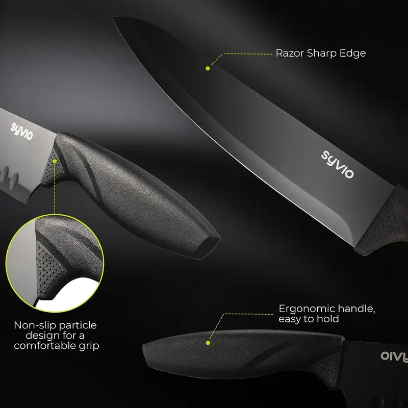 21-Piece Kitchen Knife Set with Block – High Carbon Stainless Steel, Ergonomic Handles, Self-Sharpening, and Dishwasher Safe