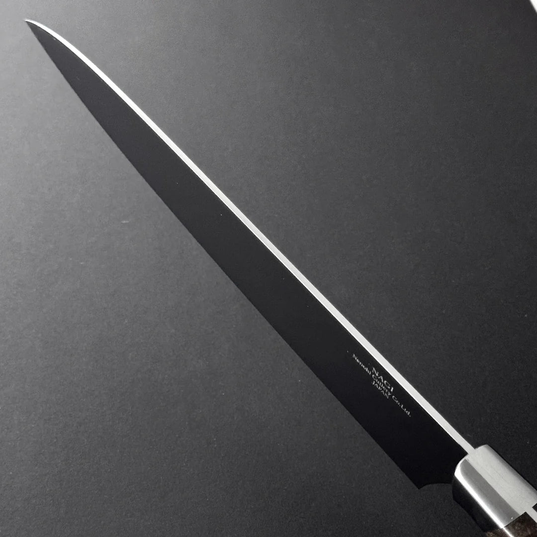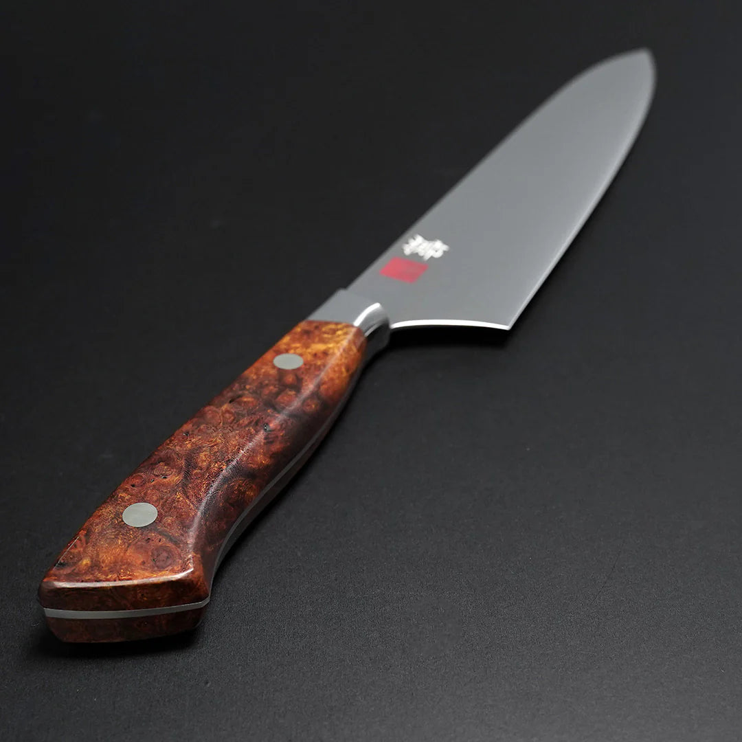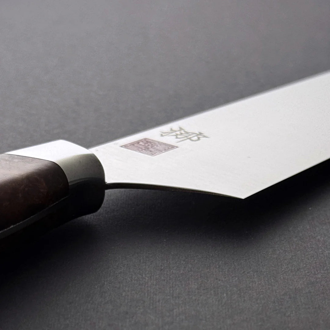 This beautifully crafted 210mm knife features a rich Desert Ironwood handle, offering both elegance and durability. It comes with a matching Saya cover for safe storage and easy portability, making it a perfect addition for collectors, chefs, or outdoor enthusiasts seeking style and functionality in one.