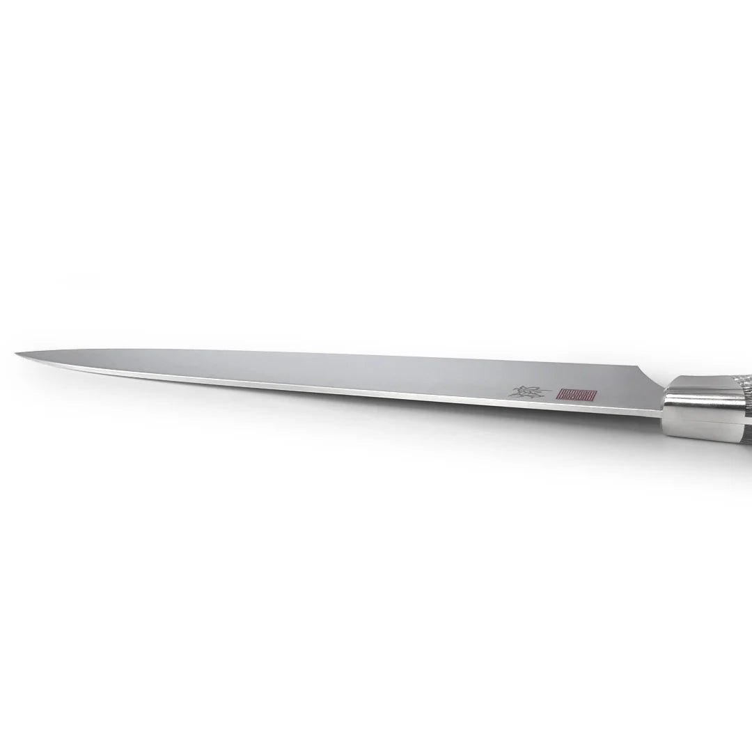 This 210mm dry silver knife combines precision craftsmanship with a sleek, durable design. Featuring a protective saya cover, it ensures safe storage while maintaining the knife’s sharpness and elegance, making it ideal for professional chefs and home cooking enthusiasts alike.