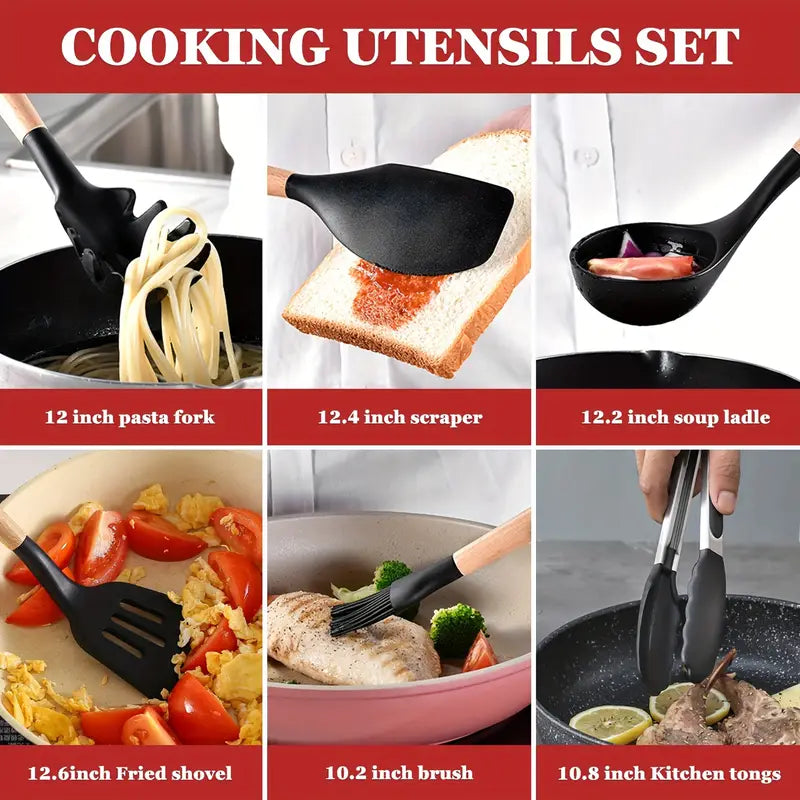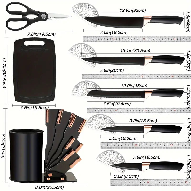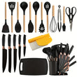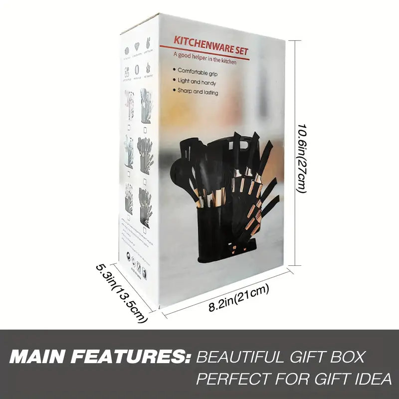 This 21-piece silicone kitchen utensil and knife set is designed for durability, convenience, and style. The set includes 11 nonstick-safe silicone spatulas and spoons, 8 sharp stainless steel knives, and a versatile 2-in-1 spatula scraper, making it a complete cooking solution for any kitchen. Dishwasher safe and easy to clean, this premium set comes in a beautiful gift box, making it perfect for home chefs, housewarming presents, weddings, and holiday gifts.