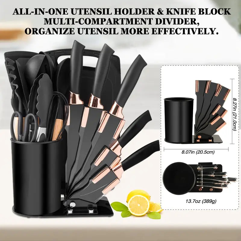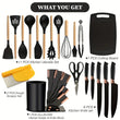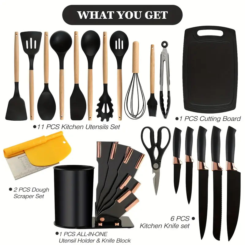 21pcs Silicone Kitchen Utensil & Knife Set – Nonstick Cookware Safe, Spatulas, Spoons, 8 Stainless Steel Knives, 2-in-1 Scraper, Dishwasher Safe with Gift Box