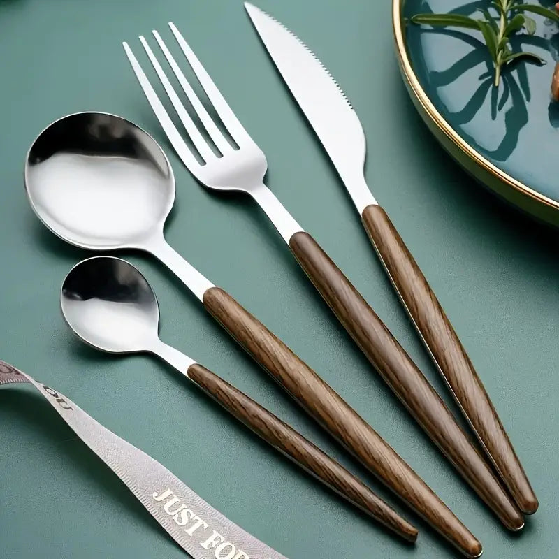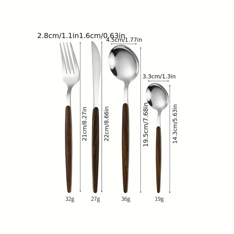 Elegant Design: Wood grain handles add a touch of luxury to your table setting.