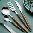 Upgrade your dining experience with this 24-piece Portuguese stainless steel cutlery set, designed for elegance, durability, and everyday convenience. Featuring a sophisticated wood grain handle, this high-end silverware set effortlessly combines style and functionality, making it perfect for any occasion—from family dinners to weddings, parties, and festive celebrations.