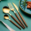 24-Piece Portuguese Stainless Steel Cutlery Set with Wood Grain Handle – Dishwasher Safe, Premium Silverware for Home, Restaurant & Events