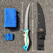 2PC 14.9" Outdoor Fishing Knife Set with 9" Stainless Steel Blade, Sharpener, Fillet & Boning Knife, Non-Slip Handle, Protective Sheath – Ideal Gift for Dad