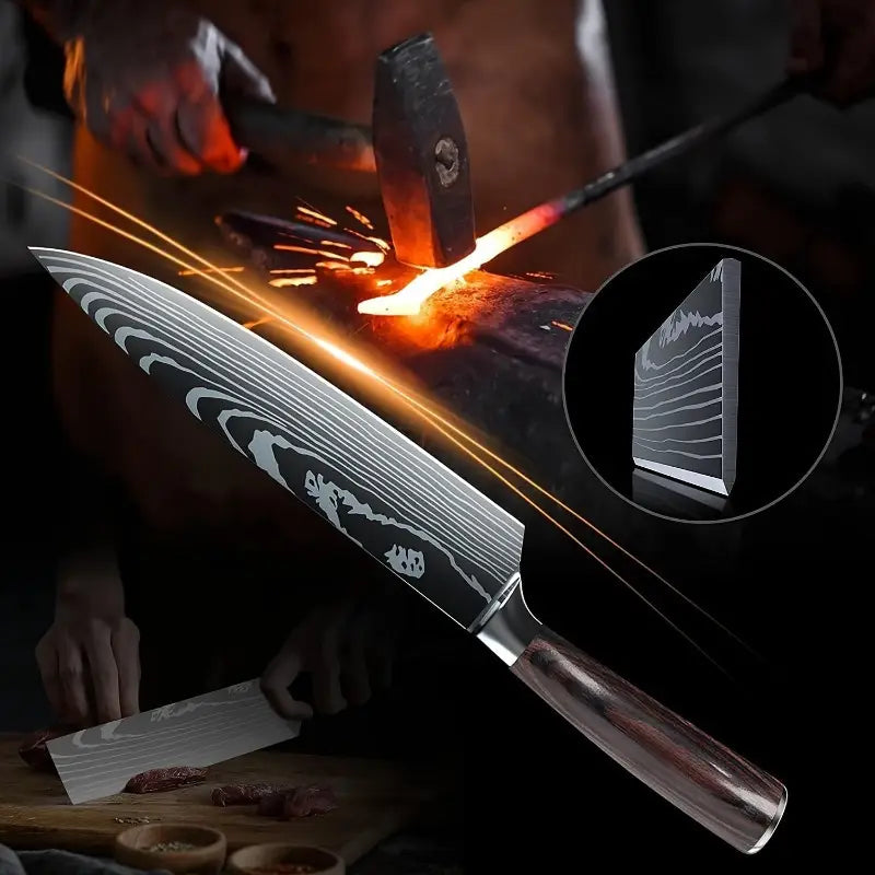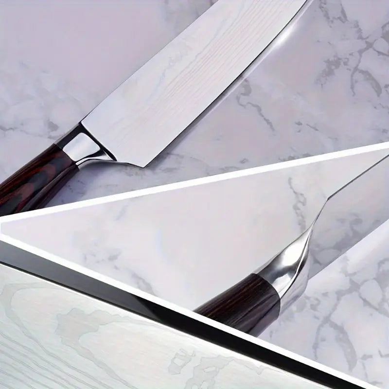 Upgrade your culinary skills with this 2-piece Japanese kitchen knife set, featuring an 8-inch chef knife and a 7-inch Santoku knife. Crafted with sharp, forged stainless steel blades, these knives provide precise slicing, chopping, and dicing for all your cooking needs. The ergonomic Pakkawood handles ensure a comfortable and secure grip, making meal prep effortless and safe. Perfect for home cooks, professional chefs, or as a thoughtful gift for kitchen enthusiasts.