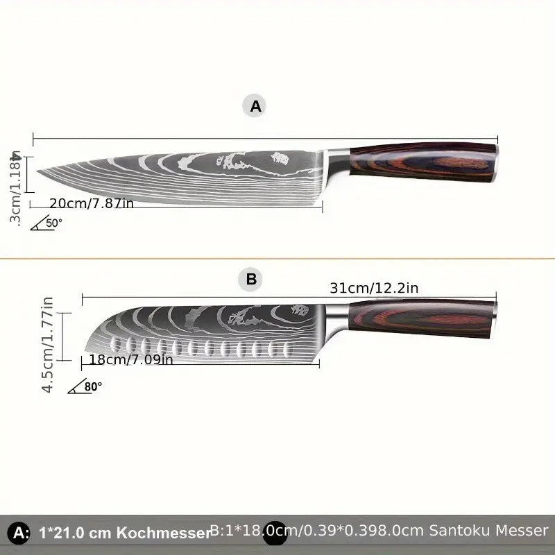 2pcs Japanese Kitchen Knife Set – 8" Chef Knife & 7" Santoku Knife with Sharp Stainless Steel Forged Blades, Ergonomic Pakkawood Handles