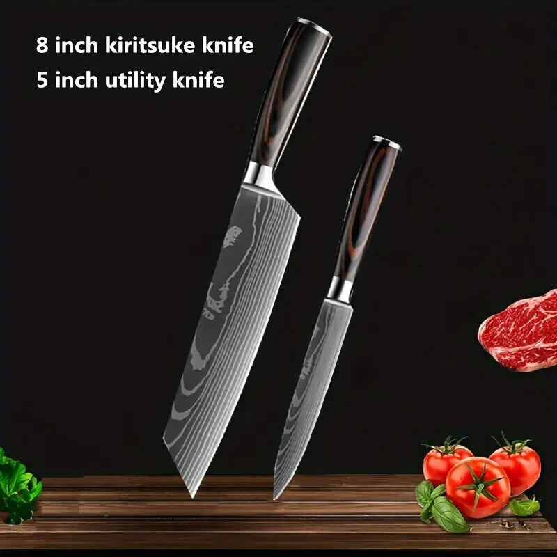 2pcs Professional Kitchen Knife Set – Japanese Stainless Steel Chef Knives | Ergonomic Wood Handles, Ideal Gift for Dad & Mom