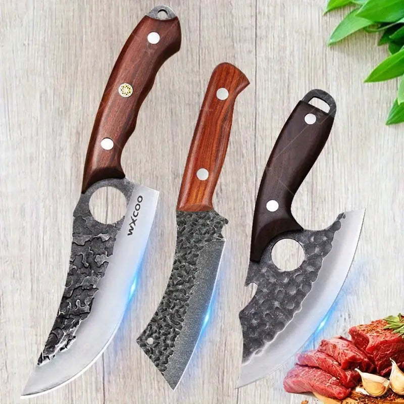 This 3- or 6-piece mini kitchen knife set includes stainless steel chef, boning, cheese, pizza, and multipurpose utility knives, ideal for chopping vegetables, cutting fish, and barbecue prep. Compact and versatile, these knives are perfect for kitchen convenience, outdoor cooking, camping, and everyday culinary tasks, combining professional quality with portability for home or travel use.