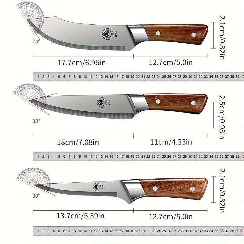 This 3-piece multifunction butcher knife set includes professional Japanese chef knives designed for precise meat and fish slicing, as well as vegetable chopping. Featuring a cleaver, cutter, and versatile knife, this set is perfect for BBQs, culinary tasks, and kitchen prep, offering durability and sharpness for all your cooking needs.