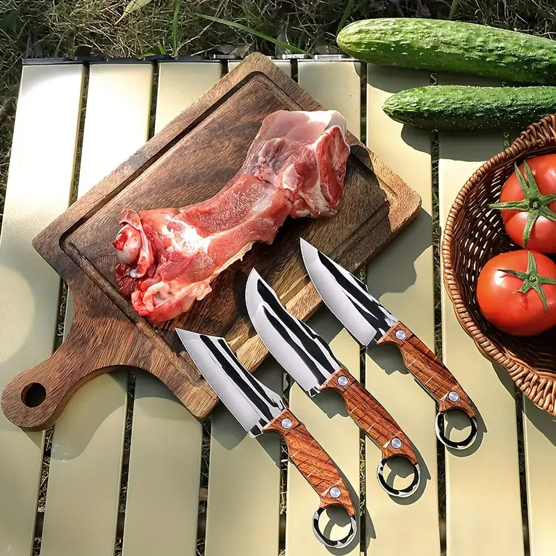 3-Piece Premium Multipurpose Knife Set – Ultra-Sharp Stainless Steel Fixed Blades for Camping, BBQ & Everyday Use