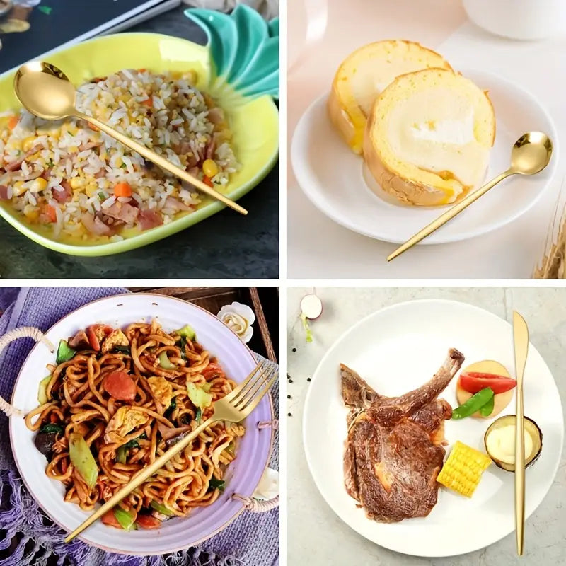 30pcs Copper Stainless Steel Cutlery Set - Dishwasher Safe Knife Fork Spoon Set