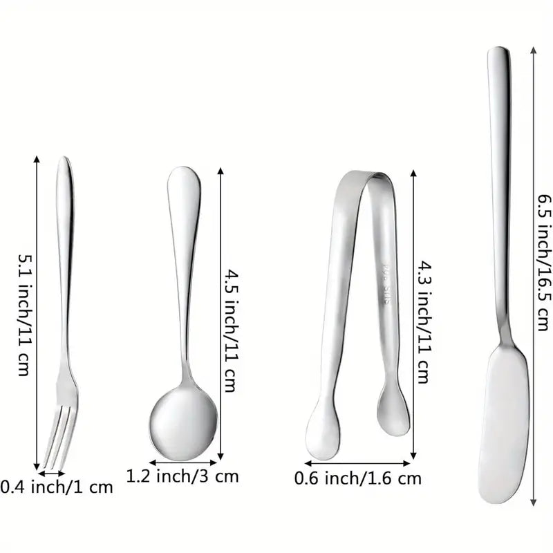 Upgrade your entertaining with this 32-piece cheese and butter spreader set, perfect for charcuterie boards, appetizers, and pastry serving. Crafted from durable stainless steel, the set includes spreader knives, mini tongs, spoons, and forks, making it easy to serve butter, cheese, jam, and other treats with style and convenience. Ideal for parties, gatherings, or everyday use, this versatile set combines functionality with elegant design.
