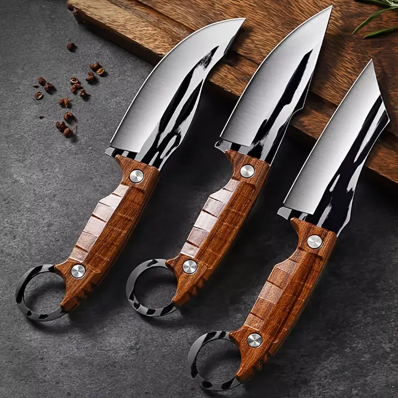 3pcs High-Quality Knife Set – Ultra-Sharp Stainless Steel Fixed Blade Meat Cutter, Boning Knife & Portable Utility Pocket Knife for Camping, BBQ & Outdoor Use