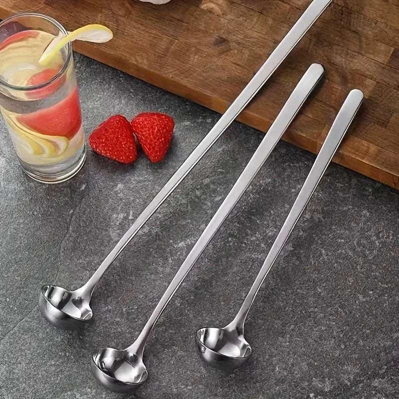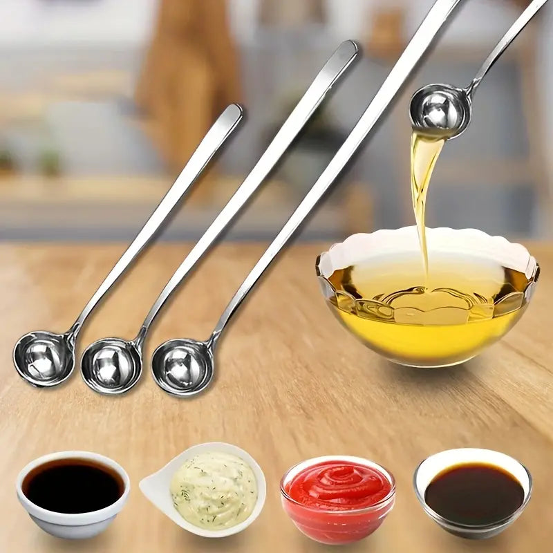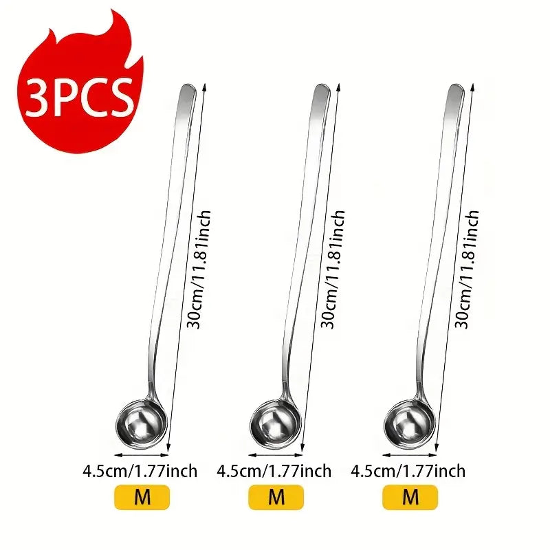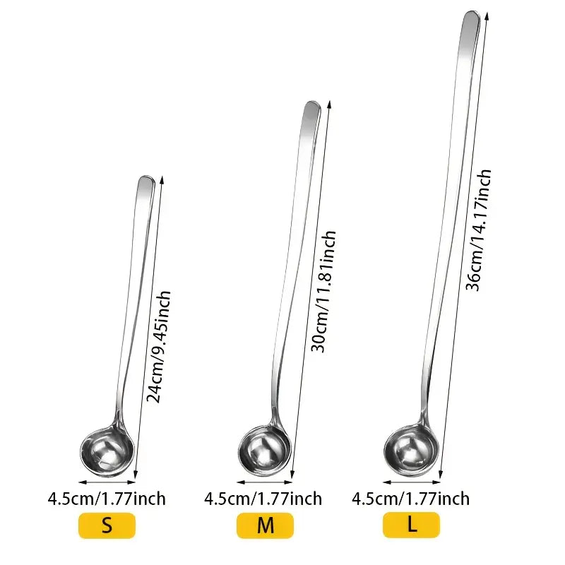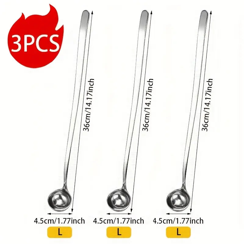 Elevate your kitchen essentials with this 3-piece Long Handled Seasoning Spoon Set, crafted from high-quality 304 stainless steel for unbeatable durability and performance. These spoons are perfect for all your cooking needs, whether you're mixing sauces, stirring hot pots, or serving your favorite dishes. With a lengthened and thickened design, these versatile spoons are ideal for high-heat tasks like frying, BBQing, and mixing ingredients, while also being great for precise measurements and serving honey or sauces.