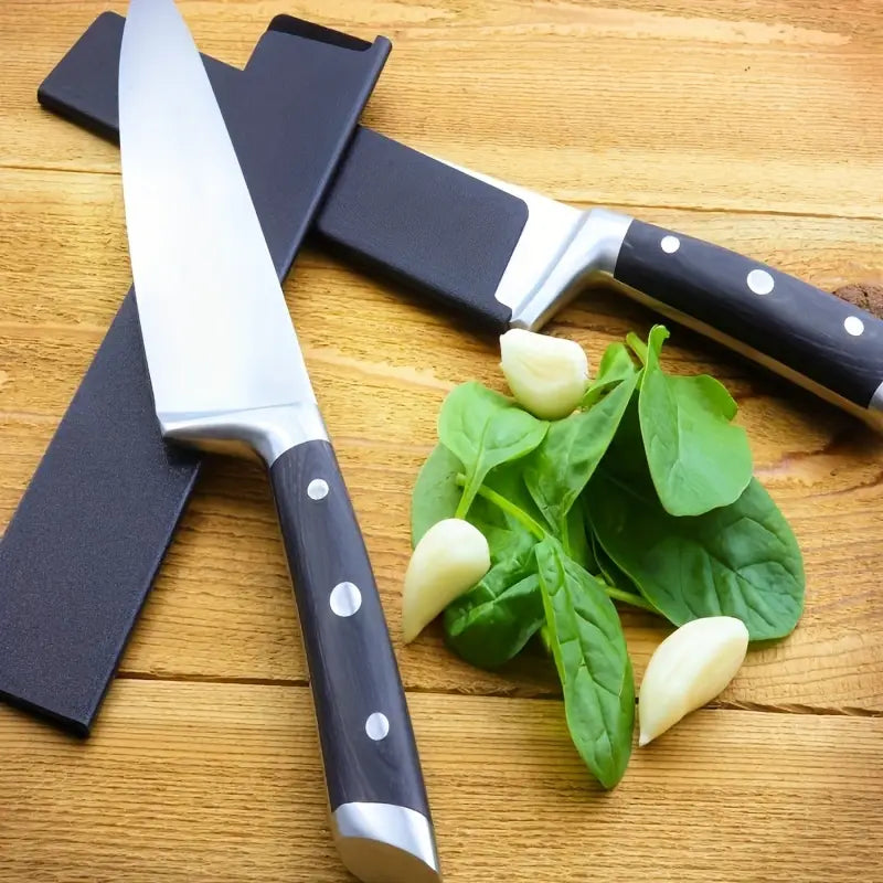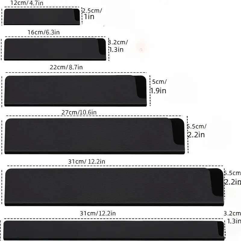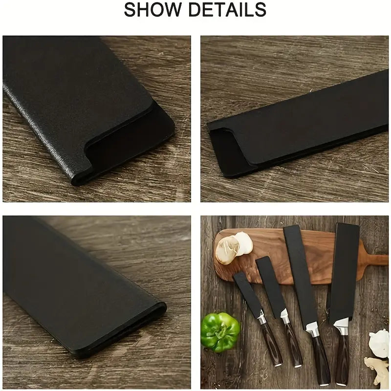 Protect your knives with this set of 4/5/6/10 universal knife edge protectors. Made with waterproof, wear-resistant felt lining, these durable and non-toxic sheaths ensure gentle care for blades, perfect for kitchen, furniture, camping, hunting, and outdoor knife storage.